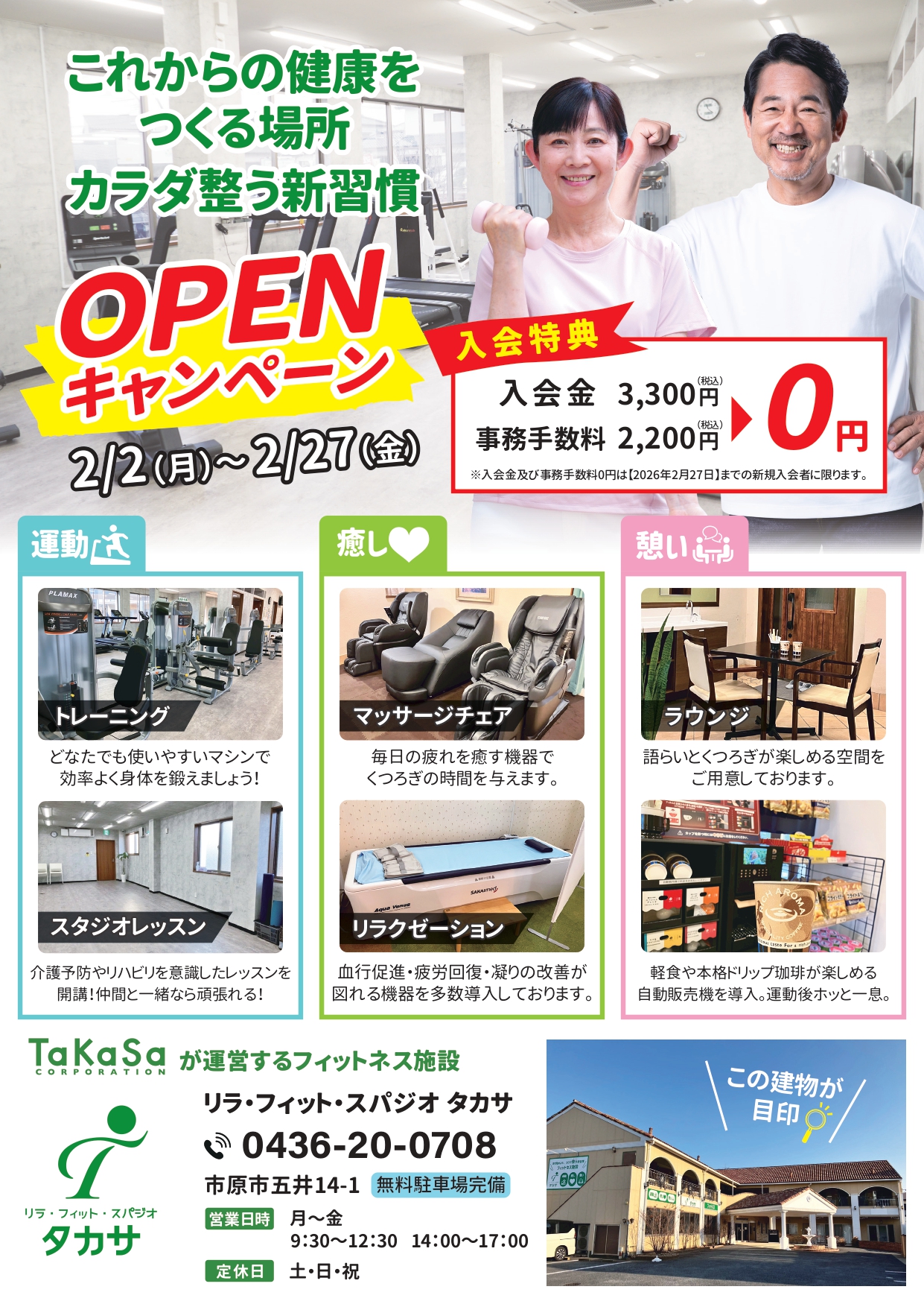 株式会社タカサが運営するフィットネス施設がついに市原市五井にオープンしました!